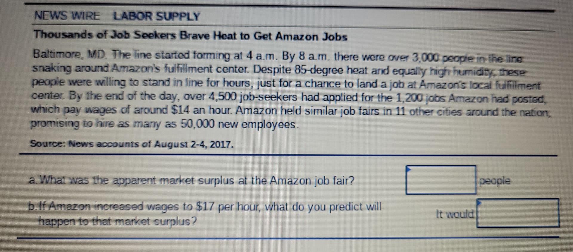 Solved News Wire Labor Supply Thousands Of Job Seekers Brave Chegg Com